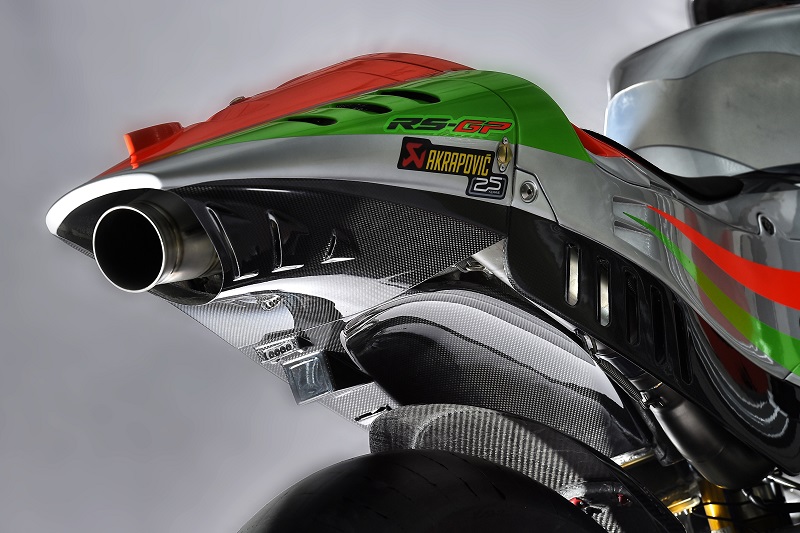 Da su krenuli od nule potvrđuje i to što su usred razvoja napravili polukružni zaokret i prešli na koncepciju kontra rotirajućeg koljenastog vratila, što je rješenje koje je koristi Yamaha, a vjerojatno i Ducati. Pritom je zadržana koncepcija V4 agregata s nespecificiranim (ali svakako uskim) kutom između cilindara, no taj stroj s više ne bi trebao imati nikakve veze s onim iz superbikea RSV4. Njegovih više od 250 KS upareno je s tzv. seamless mjenjačem koji omogućuje „bestrzajno“ mijenjanje stupnjeva prijenosa u oba smjera.