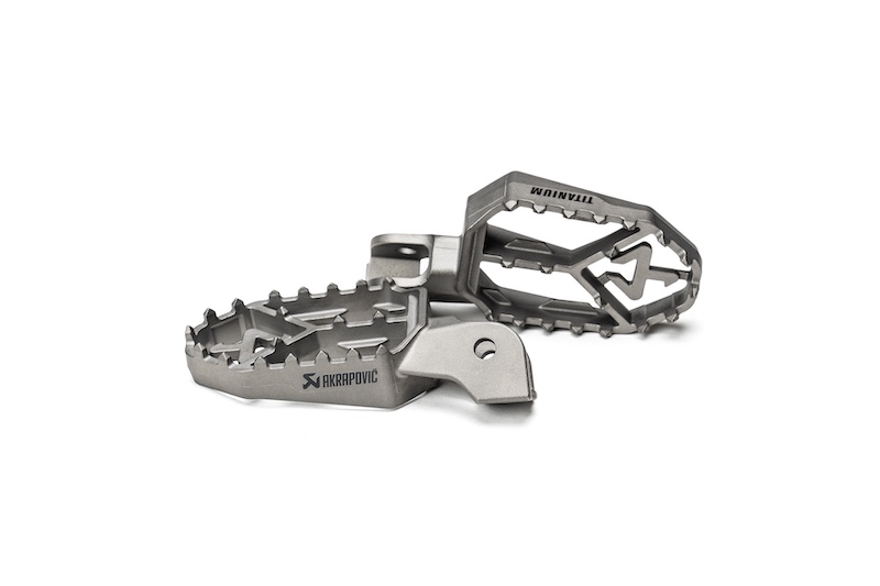 Akrapovič je napravio korak dalje u području opreme za avanturističke motocikle lansiranjem u Milanu seta Adventure oslonaca za noge od titana za odabrane motocikle. Ovaj proizvod je testiran i razvijen u stvarnim uvjetima, s prepoznatljivom Akrapovičevom pažnjom posvećenom detaljima. Dizajnirajući ovaj proizvod inženjeri su iskoristili Akrapovičevo stručno znanje u radu s laganim materijalima kako bi stvorili proizvod s jedinstvenim Akrapovičevim osmerokutnim dizajnom s ojačanjem u obliku slova Y.