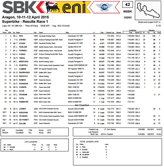 Rea je stigao u Aragon sa skoro savršenom statistikom, ali i tek tijesnim vodstvom u ukupnom poretku. Naime, na prve četiri utrke s Kawasakijem osvojio je tri pobjede i jedno drugo mjesto, no svejedno je bježao samo 10 bodova Haslamu. U Aragonu će Rea konačno ostvariti bodovnu prednost dostojnu njegove dosadašnje dominacije.