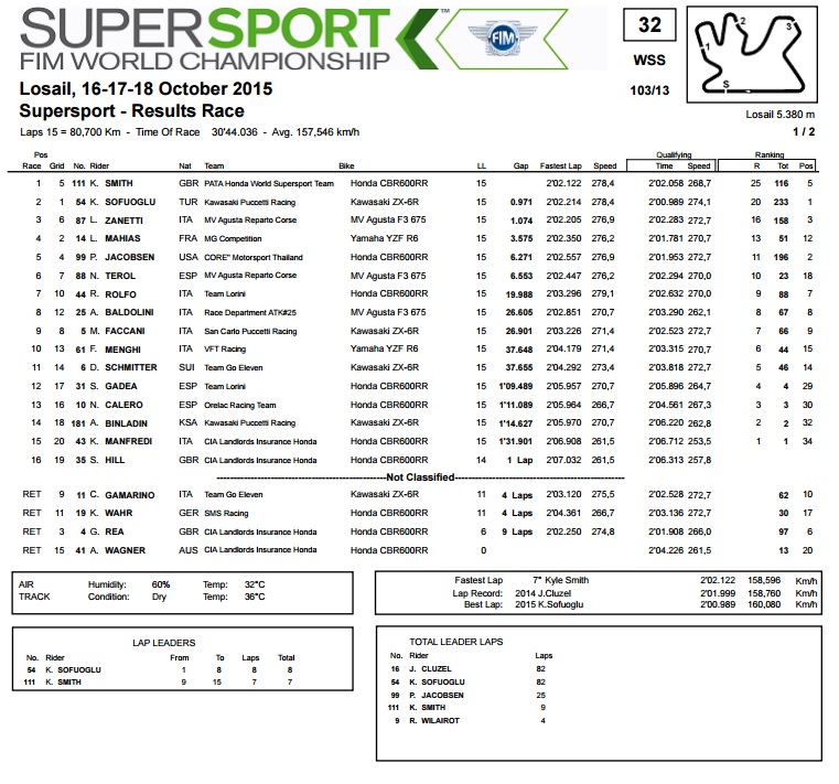 1. K. Sofuoglu – Kawasaki – 233