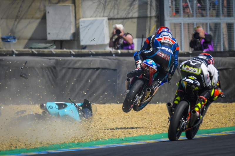 Utrke u klasi Moto3 su i obično rana poslastica dana, no ovaj put nije bilo samo do kraja neizvjesno, nego i u najmanju ruku spektakularno. Premotat ćemo priču odmah do posljednjeg zavoja pretposljednjeg kruga kada je u vodećoj skupini pao Bastiannini, da bi Kornfeil s KTM-om naletio na njegovu položenu Hondu i iskoristio je kao skakaonicu. Iako je letio kakvih desetak metara i pod kutom u duboki šljunak sletio na prednji kotač, Kronfeil ne samo da nije pao, nego je mirno nastavio dalje i završio kao šesti, što mu je jedan od boljih plasmana u dugačkoj karijeri.