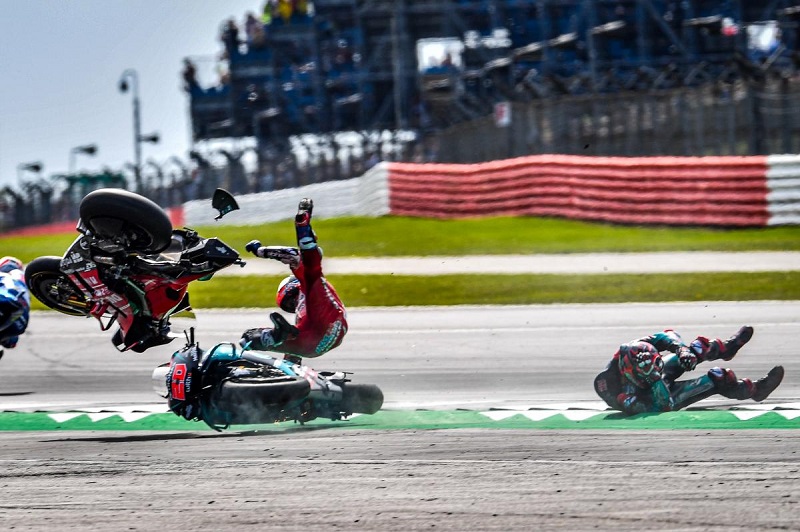 Rins je proklizao, Qurtararo zatvorio gas i pao, a na njegovu Yamahu naletio Dovizioso. Bio je to eksplozivan početak utrke u Sliverstoneu.