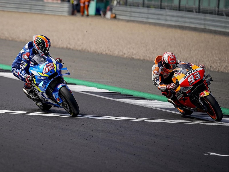 Sve to se zbilo iza Marquezovih leđa, koji je dan ranije osvojio svoj već 60. „pole position“ u samo 120 pokušaja, te sjajno krenuo u utrku. No, kao što se u Austriji nije mogao otarasiti Doviziosa, tako u Velikoj Britaniji nije mogao pobjeći Rinsu. Vozač Suzukija je nešto gubio na ravnicama i kočenjima, ali je zato bio brži kroz zavoje. Štoviše, u jednom trenutku je bio toliko drzak da je kroz zavoj broj 1 prošao Marqueza s vanjske strane. I neće mu to biti posljednji put.