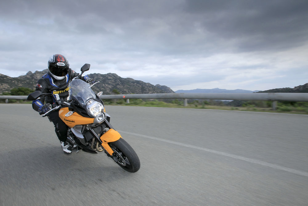 S obzirom na to da je mehanička osnova Versysa sasvim neznatno promijenjena, već smo i prije dinamičke prezentacije na Sardiniji znali da se i dalje radi o zabavnom modelu, posebno kada se radi o vožnji kroz zavoje. Već je prvi kontakt s planinskim cestama potvrdio da je Versys bio i ostao lako upravljiv motocikl, koji se bez imalo napora prebacuje iz jednog u drugi nagib, te je sklon praštanju. Posebno oduševljava u onim malo zatvorenijim ili sasvim oštrim zavojima, gdje je mirniji i manje agresivan od nekog supermota, a opet upravljiviji od kakvog nakeda ili sportskog motocikla.