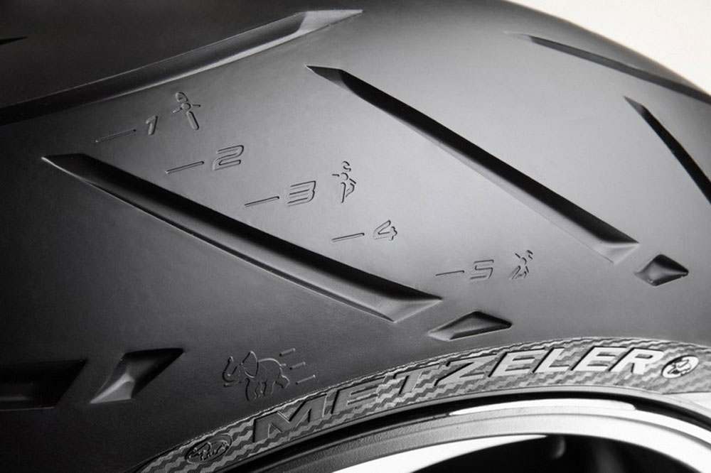 Metzeler Sportec M5 Interact ime pet definiranih zona koje se protežu duž cijele konture gume, što daje najbolju moguću hvatljivost, stabilnost i dobre povratne informacije u svim stupnjevima nagiba. Tih pet zona jasno je označeno na samoj gumi, i to pod kutovima nagiba od 25°, 30°, 35°, 40° i 45°, tako da vozači sada imaju i vizualni indikator o stupnju nagiba koji su postigli.