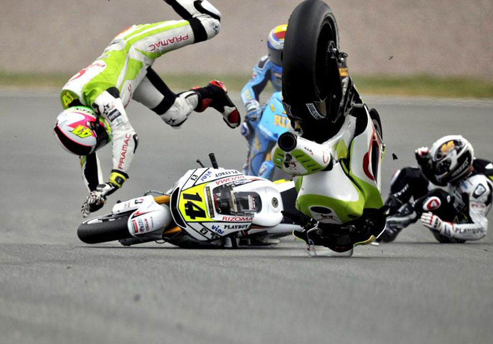 Uzbudljiva utrka u Sachsenringu imala je svoja dva poluvremena. Naime, teški pad u 9. krugu u kojem je de Puniet zaradio višestruke prijelome rezultirao je crvenom zastavom, nakon čega je odvožena nova i skraćena utrka. Osim ozlijeđenog de Punieta, na startu te druge utrke nisu se našli ni Bautista ni Espargaro koji su sudjelovali s Francuzom u istom incidentu.