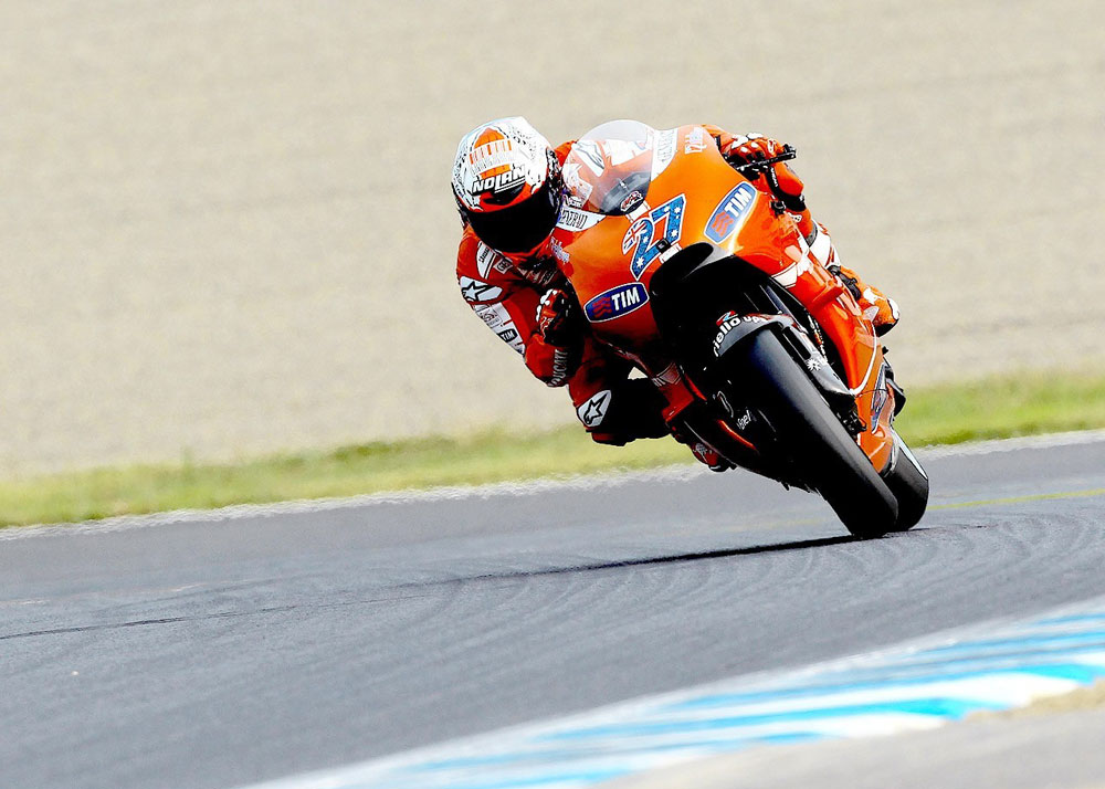 nije ponudila neizvjesnu borbu za pobjedu, ali smo zato mogli uživati u zanimljivim dvobojima nešto niže u poretku. Izuzmemo li prvi zavoj, Stoner je bio u vodstvu od početka do kraja i tako je 14 dana nakon svog prvog ovogodišnjeg slavlja dao naslutiti kako bi njemu i Ducatiju pobjeđivanje ponovo moglo ući u naviku. Dugo vremena ga je uporno pratio Dovizioso, no nakon nekog se vremena pomirio s time da na Hondinoj stazi Hondi ne može pružiti ništa više od penjanja na podij i osvajanja drugo mjesta. Poslije je izjavio da mu nije jasno čime se to Stoner hrani da može toliko juriti.