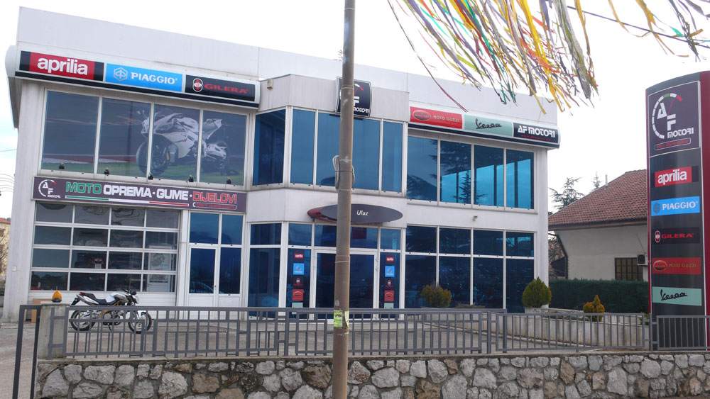 Tvrtka A.F.Motori od početka suradnje s Piaggio Grupacijom ostvaruje značajne rezultate u prodaji Aprilia i Moto Guzzi motocikala na riječkom području te je stoga nakon početka prodaje Gilera skutera u 2009. godini napravljen novi iskorak otvaranjem novog salona koji će objediniti sve marke vozila Piaggio Grupacije.