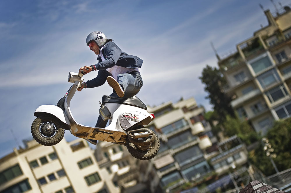 Kako se ovaj događaj odigrava u Italiji, ne treba čuditi da su odskočne rampe isprobali lokalni momci i to ni više ni manje nego na Vespama.