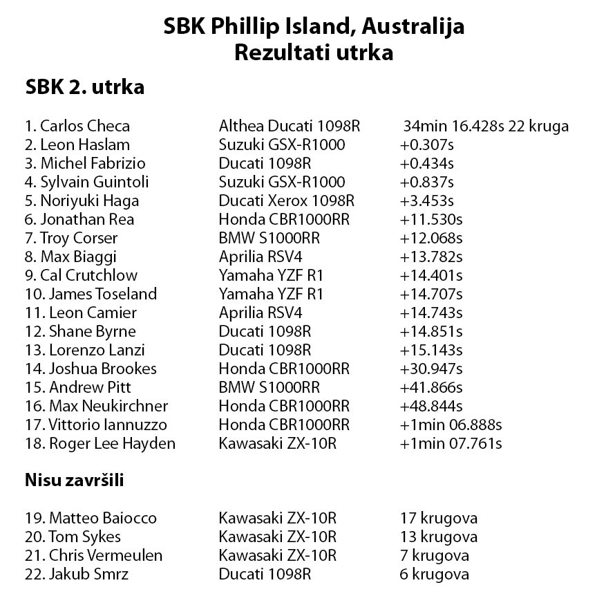 Rezultati utrka Pogledajte rezultate utrka: SBK 1. utrka SBK 2. utrka Supersport