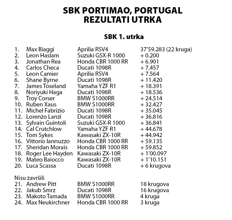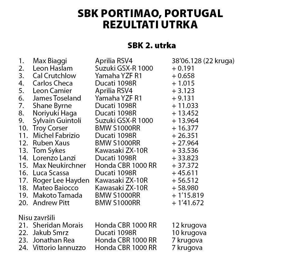 U Portimau je održano drugo SBK okupljanje ove sezone. Slast dvostruke pobjede osjetio je Max Biaggi, dok mu je u obje utrke prva pratilja bio Leon Haslam.