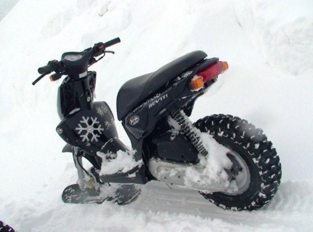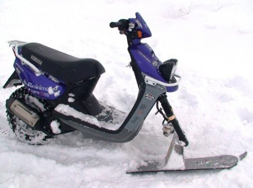 Talijanska tvrtka Rimini Moto prepoznala je priliku pa vlasnicima skutera i svima koji se žele na pristupačan način zabavljati na snijegu na oktanski način ponudila komplet za prilagođavanje skutera upravo tim uvjetima. Komplet nazvan Slide Scooters se sastoji od prilično jednostavne skije koja zamjnenjuje prednji kotač te stražnje gume s obiljem "čepova" koja osigurava hvatljivost na snijegu i ledu.