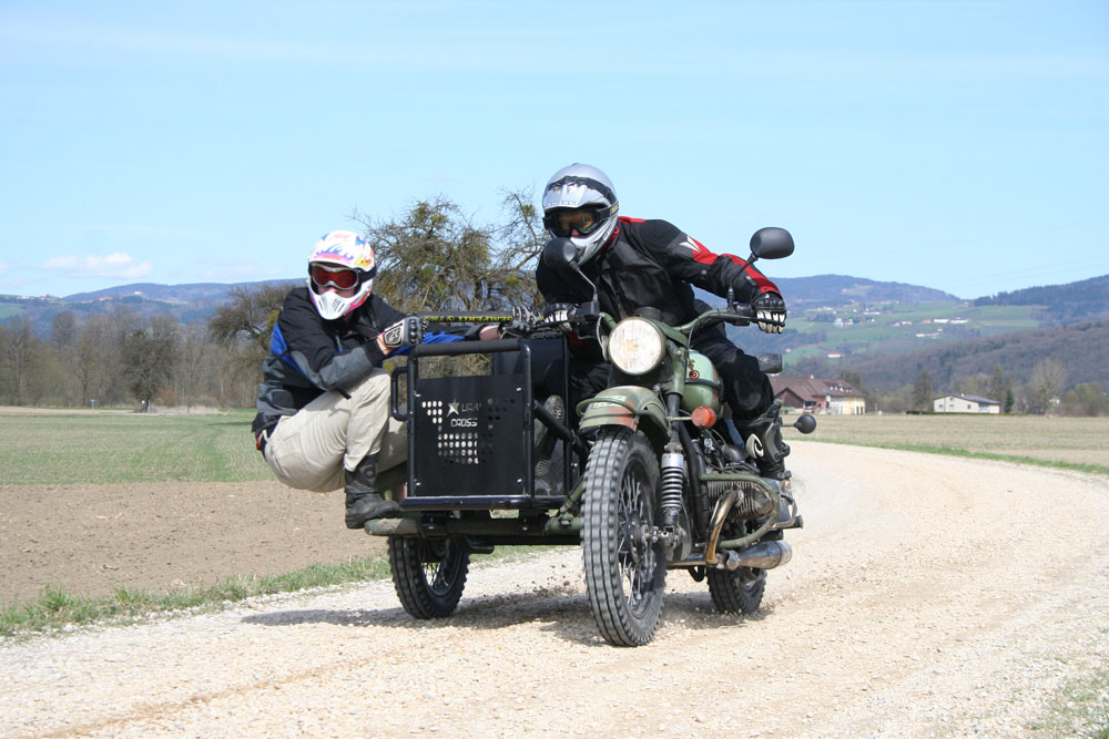 Za razliku od ostalih Uralovih modela, kod Crossa je suvozač u prikolici sasvim nezaštićen od blata i vremenskih neprilika, a uz to mu je na raspolaganju i bitno neudobnije sjedalo. Zato ne mora samo sjediti već može i stajati, te tako prebacivati težinu u zavoju, pri čemu mu je od pomoći i veliki prednji rukohvat.