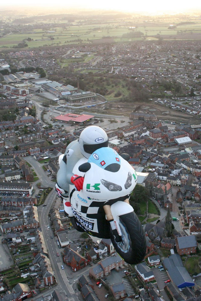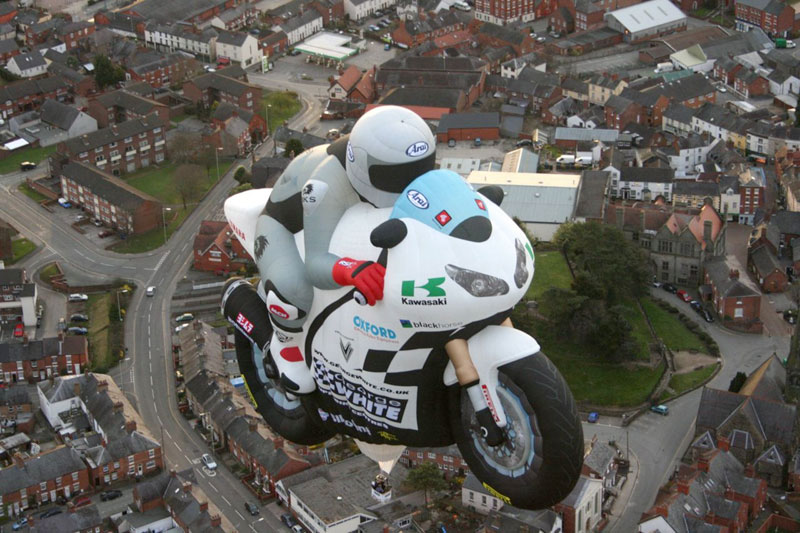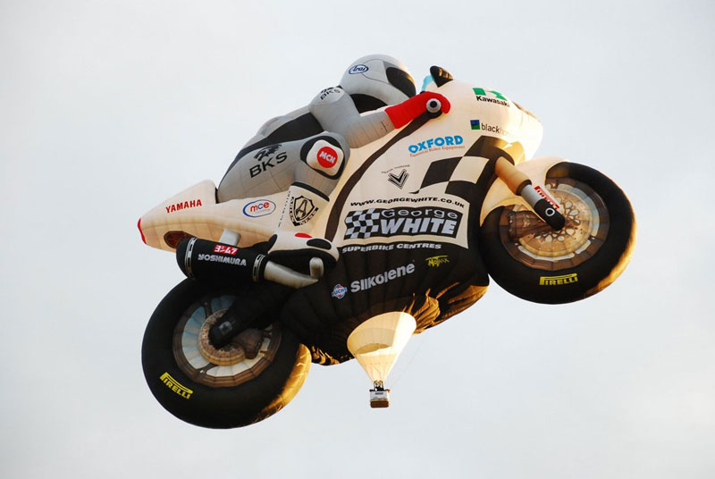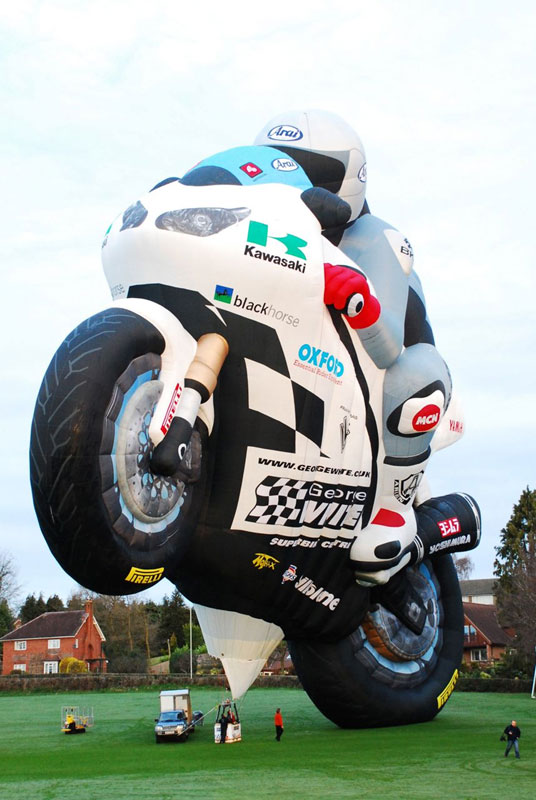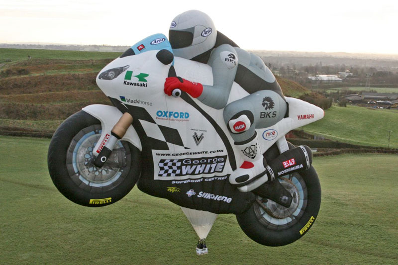 Britanska tvrtka George White Superbike za promociju svojih dućana je odabrala pomalo nesvakidašnji način. Na sebe i proizvode koje nude će pažnju skretati pomoću velikog, 37 metara visokog i 47 metara dugačkog balona na topli zrak u obliku motocikla s vozačem, naravno, uvećanog 23 puta. Balon je izrađen u tvrtki Lindstrand Balloons, a ukoliko vremenske prilike dozvole, vidjet će ga posjetitelji svih utrka britanskog Superbike prvenstva te još nekih događaja na "Otoku" i u Europi.