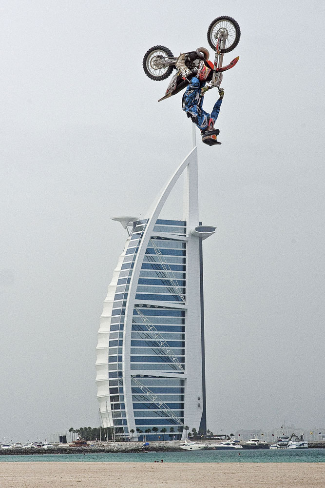 Amerikanac Ronnie Renner i Belgijanac Gilles Dejong zagrijali su atmosferu pred otvorenje Red Bull X-Fighters sezone. Vratolomni trikovi mogli su se vidjeti ispred 321 metar visokog hotela Burj Al Arab u Dubaiju. Svjetska serija počinje večeras, a natjecanje iz Dubaija možete pratiti uživo na Red Bull TV-u (ulaz kroz redbull.hr) od 19:15h.