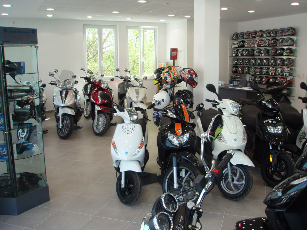 Novi prodajno servisni centar u prostoru od 220 m² objedinjuje ponudu svih vozila Piaggio, Vespa, Gilera, Aprilia, Moto Guzzi i Derbi te uz originalnu dodatnu opremu nudi i AGV, Spyke i Vemar zaštitnu opremu.