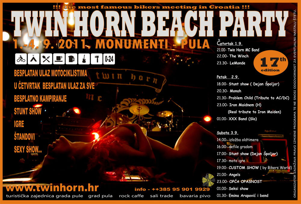 Sedamnaesti TWIN HORN BEACH PARTY održat će se 0d 1. do 4. 9. 2011 godine u Puli na lokaciji MONUMENTI (Valelunga).