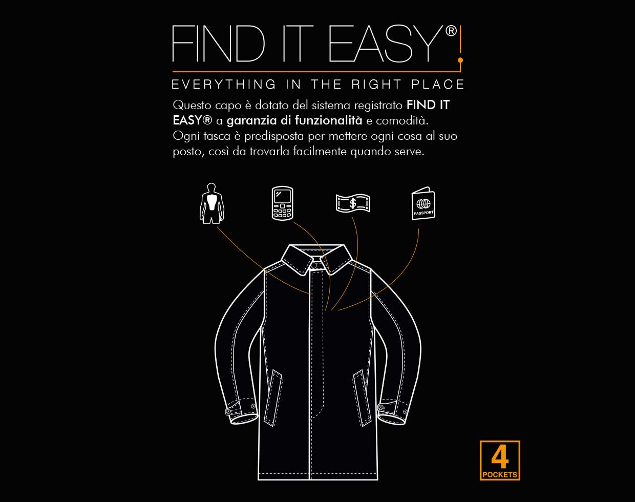 Tu je, za Tucano Urbano proizvode već znani „Reflective" sustav koji znači da ovratnik, manžete na rukavima te džep sakrivaju reflektirajuće elemente koji se po potrebi mogu lako izvući i prikazati te time donjeti dodatnu sigurnost u prometu. Dodatno, Indro nudi i „Find it easy" sustav pametnih džepova za lako odlaganje i kasnije pronalaženje svakodnevnih predmeta kao što su novčanik, mobitel, naočale i slično.