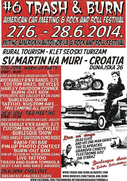 Ove godine će se po šesti puta za redom održati genijalni Trash & Burn festival. Riječ je, naravno o susretu za ljubitelje američkih automobila, motocikala i općenito "Americana" kulture. Lokacija je dobro znana, dokazana, a sadržaj će biti još bogatiji, zahvaljujući trudu organizatora.