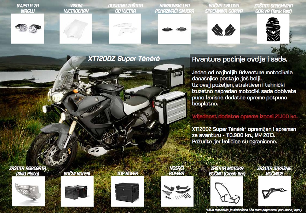 Prošlogodišnji model Yamahe Super Ténéré sada je dostupan s bogatim i besplatnim paketom „avanturističke" dodatne opreme. Ušteda je veća od 20 tisuća kuna.