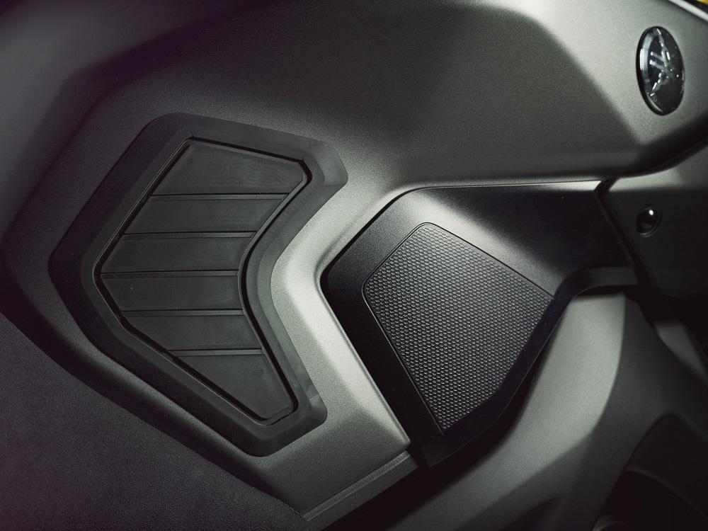 Osim obilnog korištenja mat boje, Street Tracker je poseban i po upotrebi aluminijskih ukrasa, pa se tako kod lokalnog dilera ugrađuju aluminijski bočni nosači za natjecateljski broj, a od istog je materijala izrađena i prednja maskica, koja navodno osigurava i bolju zaštitu od vjetra. Ti detalji daju laganu retro notu i skladno se slažu sa aluminijskim nosačem prednjeg blatobrana, koji je kratak i izrađen od karbona.