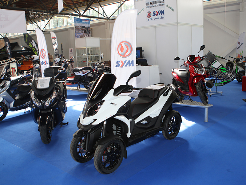 Za razliku od trgovaca motocikala, većina skutera se pojavila na sajmu. Iako drugoplasirane Yamahe nema kao niti Honde, izlagala je talijanska grupacija Piaggio te tajvanske marke Kymco i SYM. Zvijezda među skuterima svakako je novi Kymco Down Town 350i (na slici s direktorom tvrtke Krk Moto Dinkom Jakovljevićem).