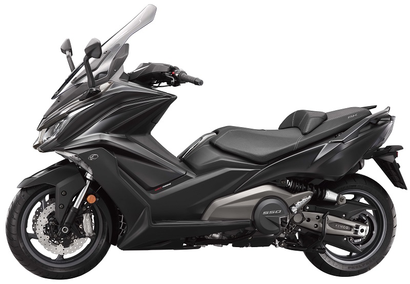 AK 550 je najnoviji i najnapredniji proizvod Kymca, koji se želi ugurati u segment vrhunskih sport-touring skutera. Očito je i dizajnerima i inženjerima kao inspiracija poslužila Yamaha TMAX, pri čemu je AK 550 u blagoj prednosti po pitanju deklariranih 53,5 KS, koje se prenose preko mokre spojke, CVT mjenjača i remenskog završnog prijenosa.