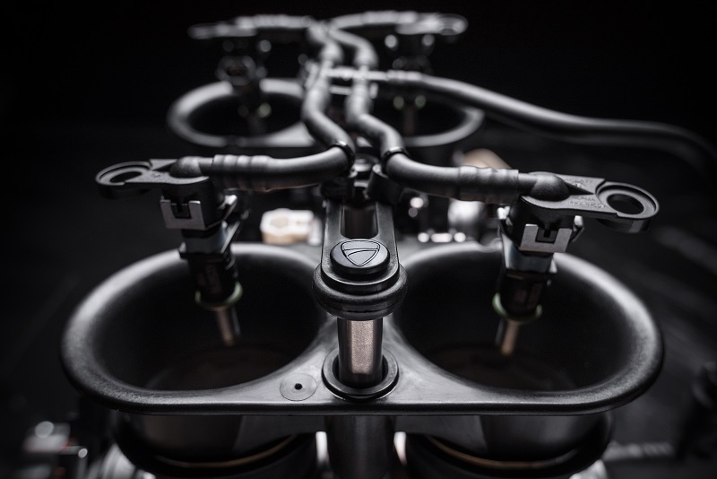 Dakle, dva reda cilindara su postavljena pod 90°, s time da bi cijeli agregat trebao biti zaokrenut unazad za 42°, kako bi se dobio što bolji raspored težine. Provrt iznosi 81 mm, što je maksimalna vrijednost za MotoGP motocikle, ali Desmosedici Stradale ima duži hod, pa tako zapremina iznosi 1.103 ccm. To znači da će Ducati morati predstaviti još ekstremniju verziju agregata kraćeg hoda klipa za poseban R model motocikla s kojim će se od 2019. natjecati u Superbike prvenstvu.