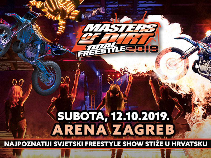 Zvijezde freestyle vratolomija dolaze u Arenu Zagreb 12. listopada ove godine u sklopu turneje „Masters of Dirt Total Freestyle Tour 2019“. Sve posjetitelje očekuje adrenalinski spektakl prepun nevjerojatnih skokova i flipova na motociklima, quadovima, planinskim i BMX biciklima u izvedbi virtuoza koji će izvoditi najluđe trikove na svijetu i skakati do čak 14 metara u visinu na poligonu dugačkom 24 metara uz miris spaljenih guma, zvukove službenog Masters of Dirt DJ-a Mosakena te „Fuel Girls“ plesačica iz Velike Britanije.