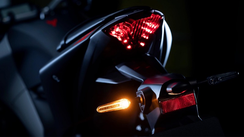 Dakako, tu mislimo na minimalistički dizajn prednje maskice u kojem centralno mjesto zauzima LED glavno svjetlo, izvedeno po uzoru na ono s modela R1. Iznad njega su dva zašiljena pozicijska svjetla, koja nisu u LED tehnologiji, ali zato su LED izvedbe novi pokazivači smjera. Sliku prednjeg kraja zaokružuje spremnik goriva sa zašiljenijim oplatama, zbog čega MT-03 djeluje šiti u ramenima.
